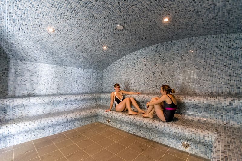 Complexe équipé d'un bassin sportif de 25 m tout en inox, d'un bassin d'apprentissage avec bulles et jets massants, d'un espace bien-être doté d'un hammam, d'un jacuzzi, de deux saunas, d'une zone de relaxation et de trois douches massantes. Il dispose également d'une partie extérieure comprenant un bassin, un îlot central complété d'un couloir de nage à contre-courant, d'une plage minérale de 20 m2, des espaces paysagers et d'un solarium végétal.